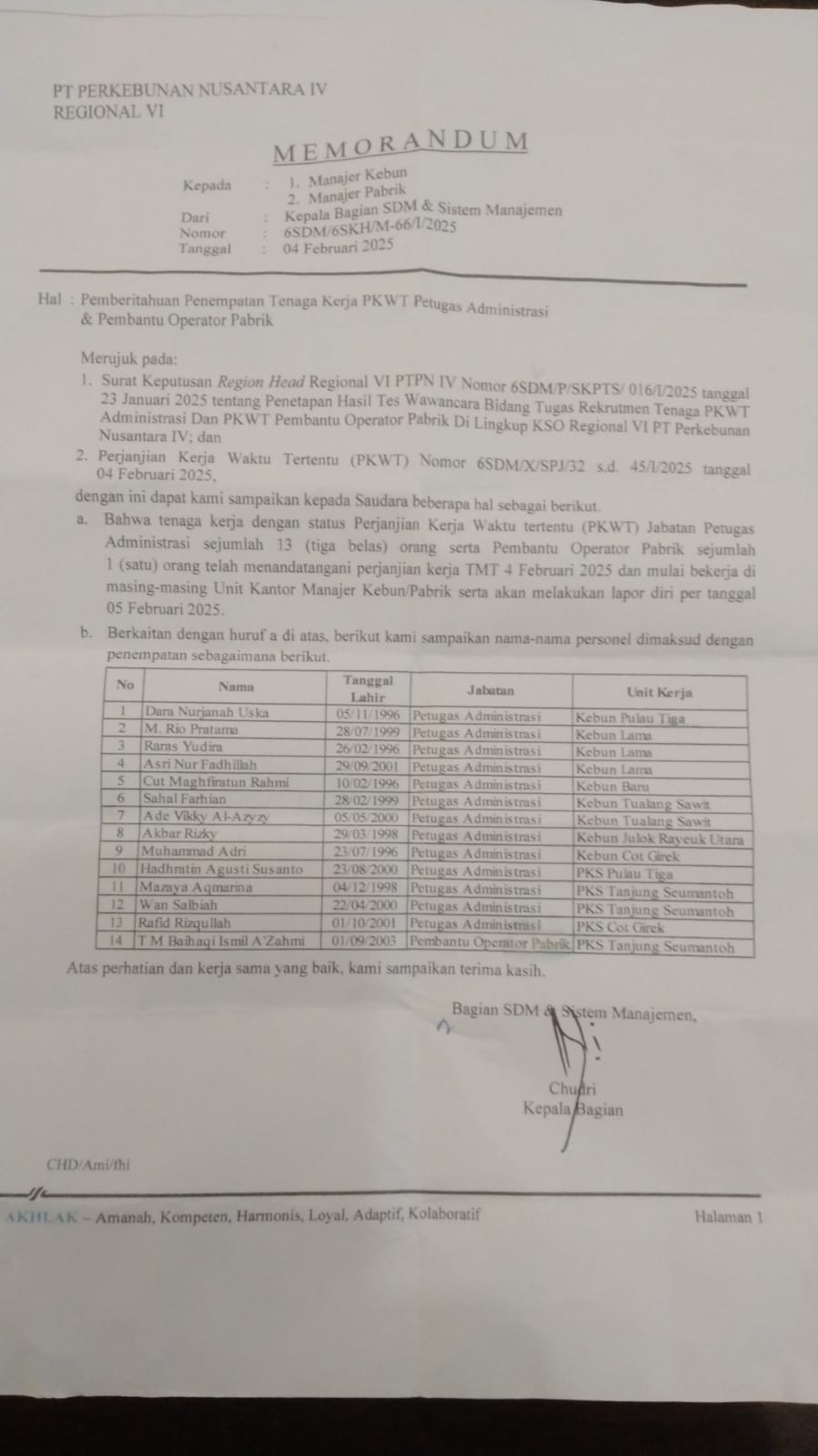 Dikatakannya, bahwa rekrutmen yang berbau KKN ini juga sudah dilaporkan ke Direktur SDM PTPN IV, Bapak Suhendri. Dan laporan itu direspon dengan baik serta berjanji akan segera menindaklanjuti.